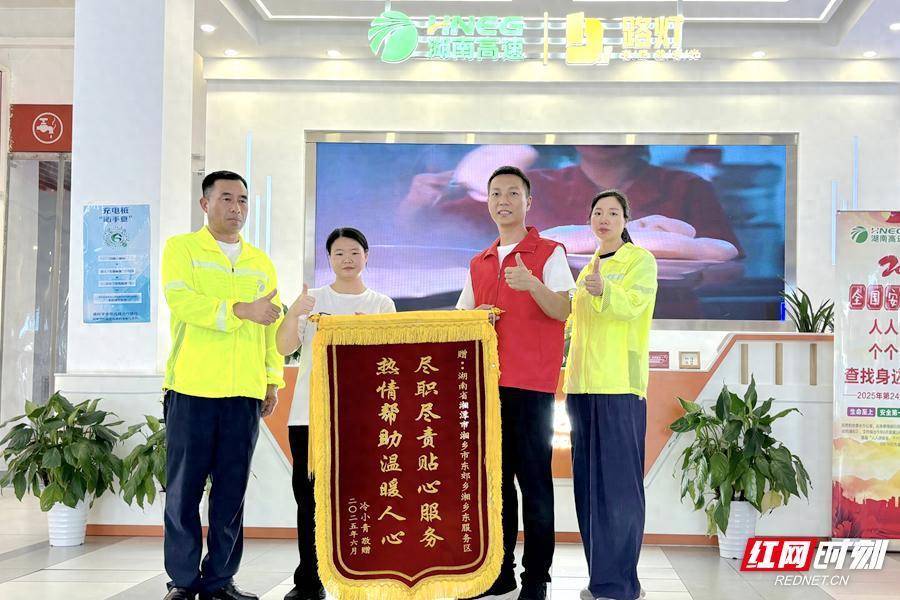 6月18日,湘乡东服务区收到了一面“尽职尽责贴心服务,热情帮助温暖人心”锦旗。